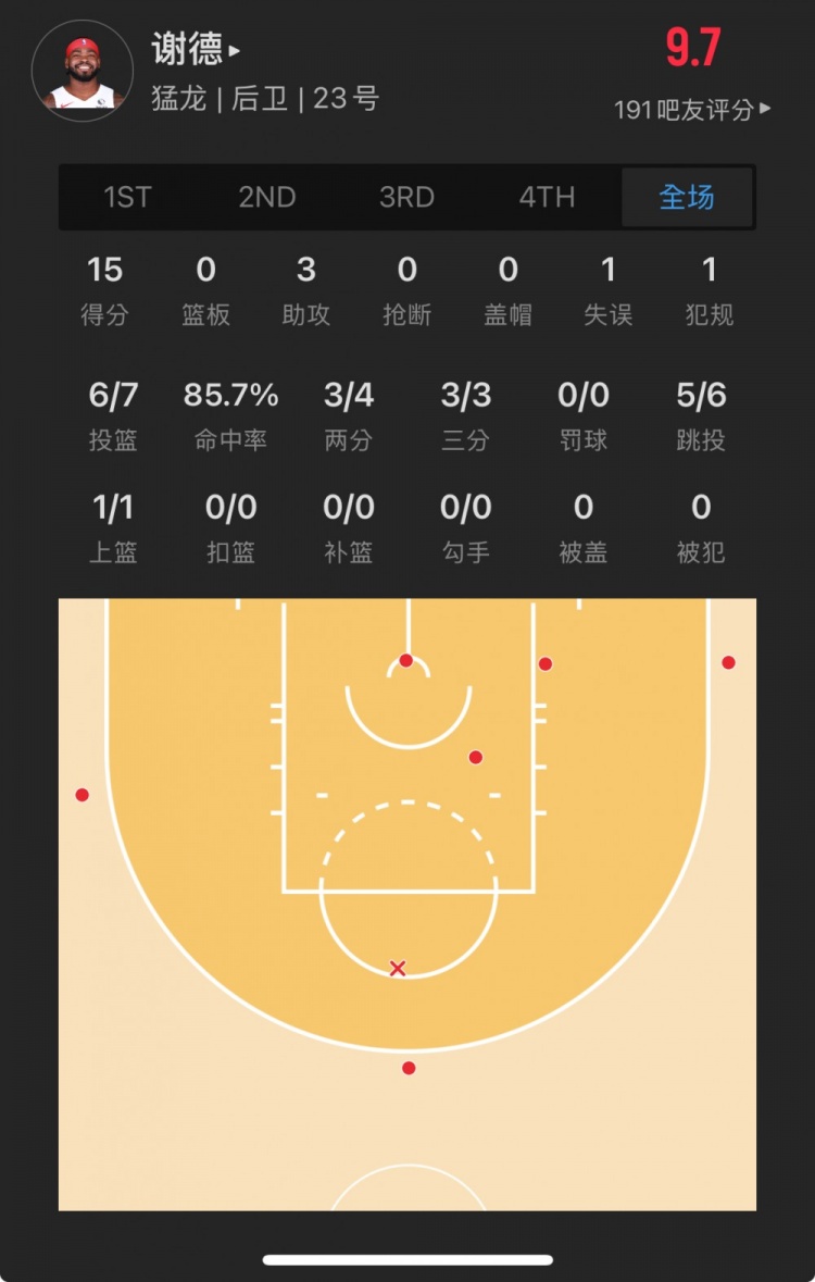灰熊39號(hào)秀 杰倫-韋爾斯 登場(chǎng)23.0分鐘