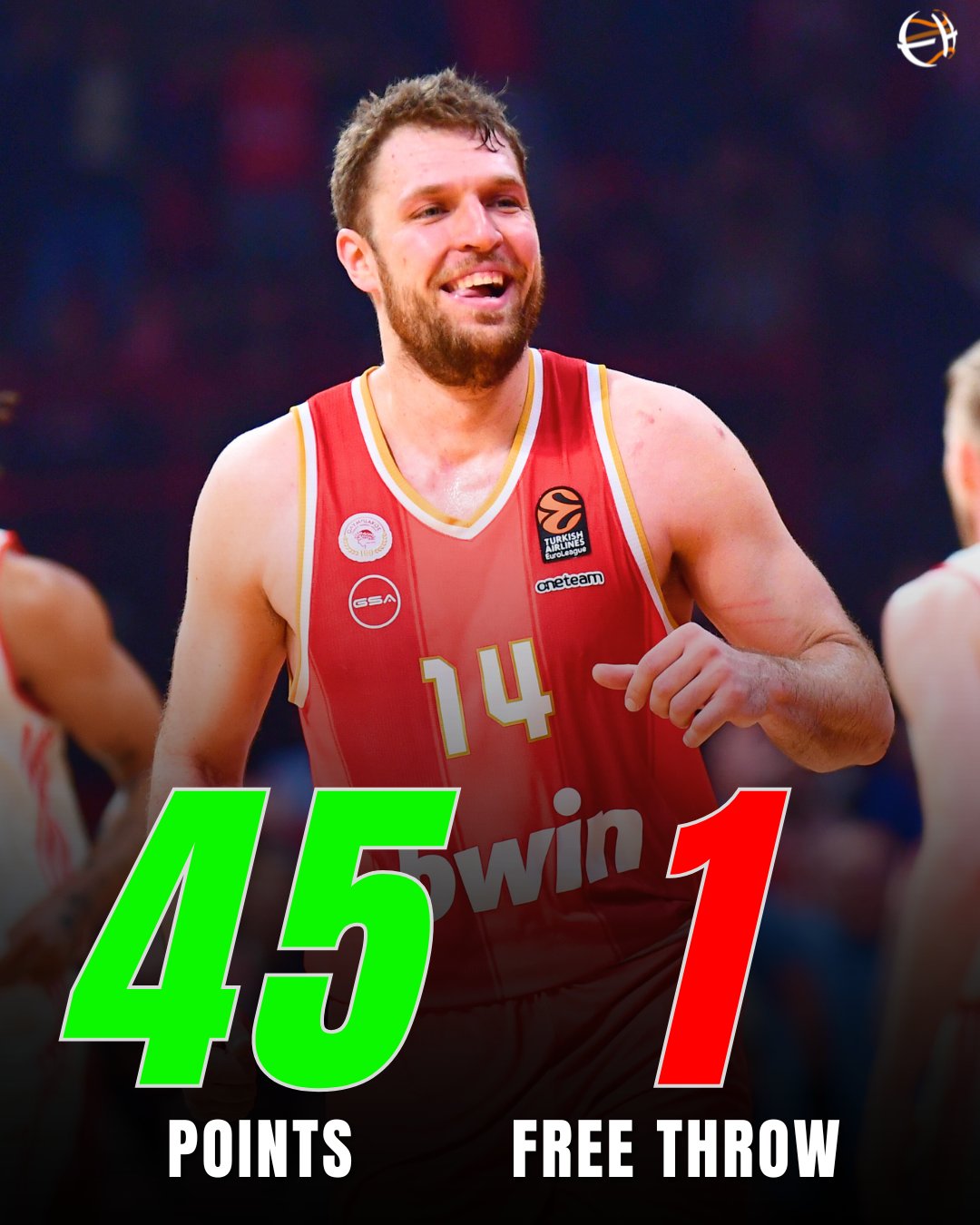 此役,國王舊將、歐冠大神、奧林匹亞科斯前鋒韋津科夫大發(fā)神威,本場比賽他上陣35分14秒20投18中,三分10中8、罰球1中1,狂砍45分創(chuàng)生涯新高,還有7籃板2助攻進(jìn)賬,PIR值高達(dá)52!