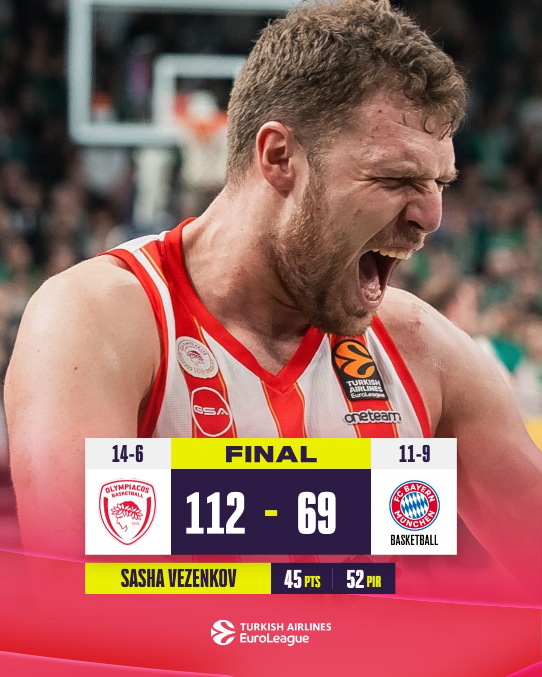 01月11日訊 歐冠籃球聯(lián)賽,奧林匹亞科斯以112-69大勝拜仁。