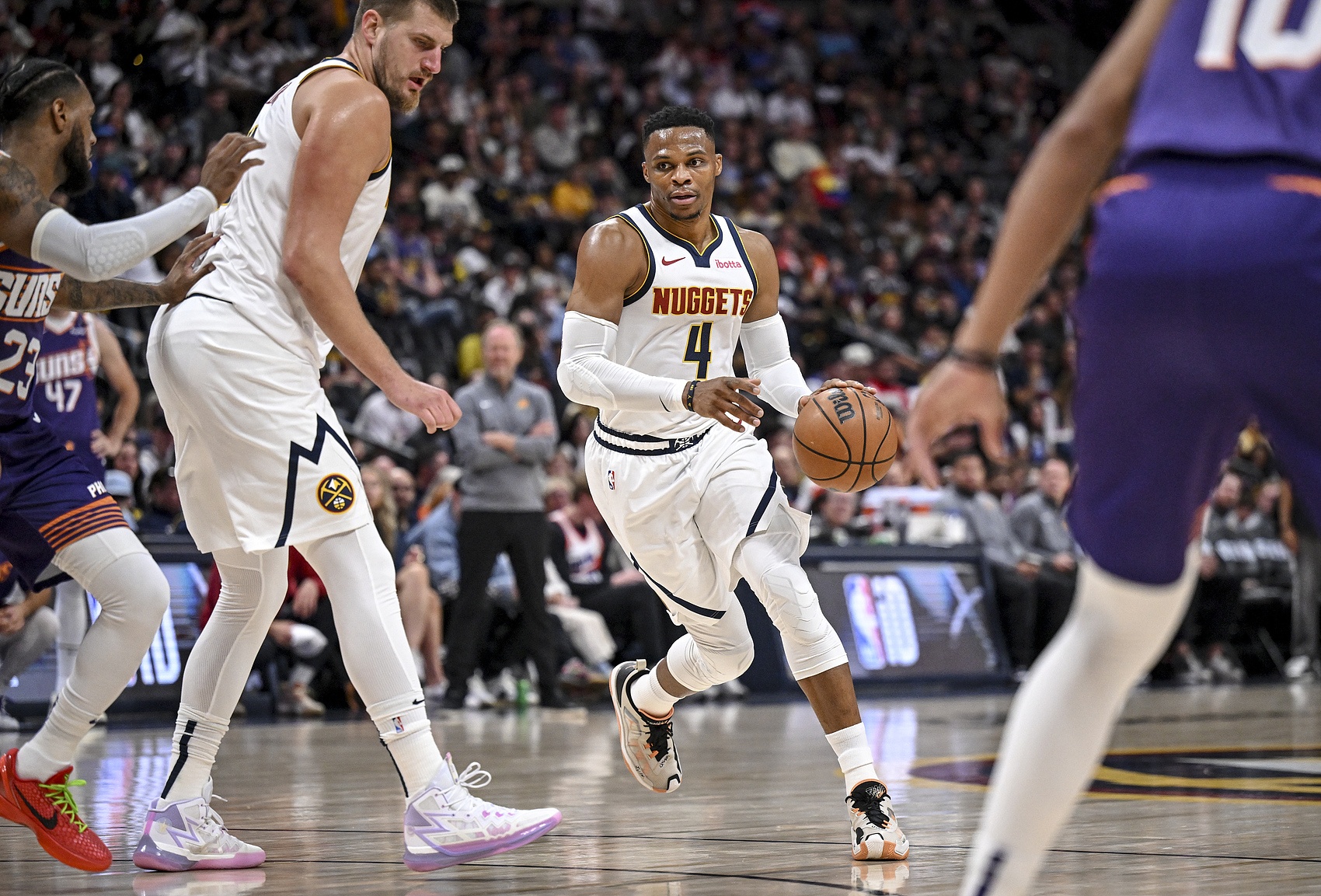 此役,威少出戰(zhàn)36分鐘,投籃17中8,三分5中2,罰球9中7,砍下25分11籃板(4個(gè)前場(chǎng))10助攻1搶斷1蓋帽;約基奇出戰(zhàn)38分鐘,投籃21中14,三分球1中1,罰球8中6,砍下35分12籃板15助攻4搶斷。