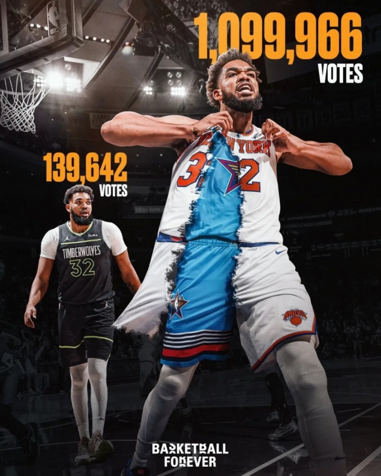 改穿尼克斯隊球衣后,唐斯場均能轟下25.3分14個籃板球和3.3次助攻,得分比上賽季在森林狼多了3.5分,籃板球更是多了5.7個,目前正在領(lǐng)跑聯(lián)盟總籃板榜,投籃命中率是生涯新高的55.2%,三分球命中率同樣是生涯新高的45%,個人效率值也從18.8躥升到了26.9。在全明星投票的第二輪結(jié)果中,唐斯位列東部前場第三,個人得票數(shù)同比增長了6.75倍!