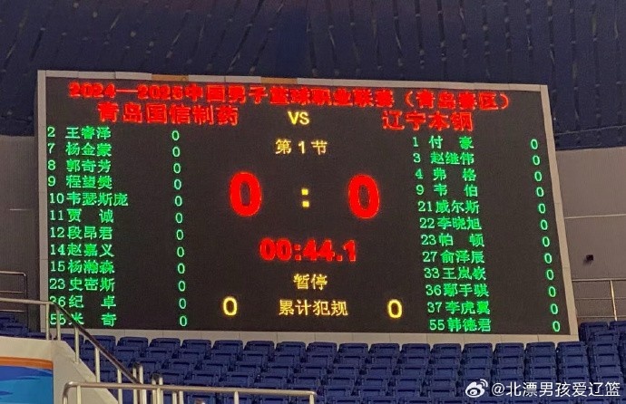 1月12日訊 CBA常規(guī)賽,遼寧VS青島的比賽將在稍后開始。