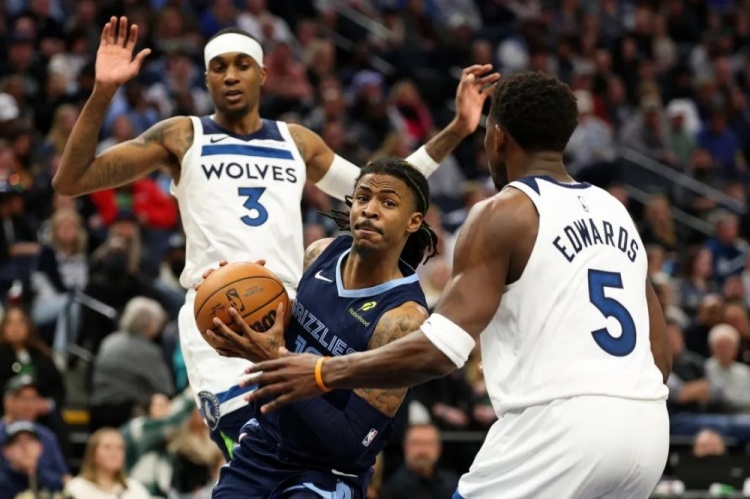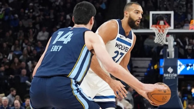 但沒有戈貝爾的時(shí)段,防守又是另一個(gè)故事。雖然法棍最后幾個(gè)回合的防守都成了背景板,全場(chǎng)看,他在這一段依舊有作用?;蛘哒f,他不在的時(shí)候,灰熊只要能把球以各種方式帶到或者傳到近筐區(qū)域,狼都沒有什么抵抗強(qiáng)度。