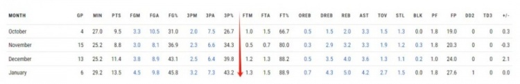 迪溫賽季三分命中率36.7%,遠(yuǎn)不及過去兩年高光,但他的手感在逐月回升,平均準(zhǔn)星很有希望回到去年。