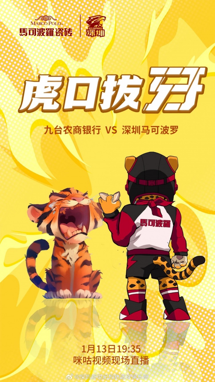 1月13日19:35,CBA常規(guī)賽第30輪,深圳馬可波羅將客場(chǎng)挑戰(zhàn)吉林九臺(tái)農(nóng)商銀行。屆時(shí),咪咕視頻進(jìn)行直播。