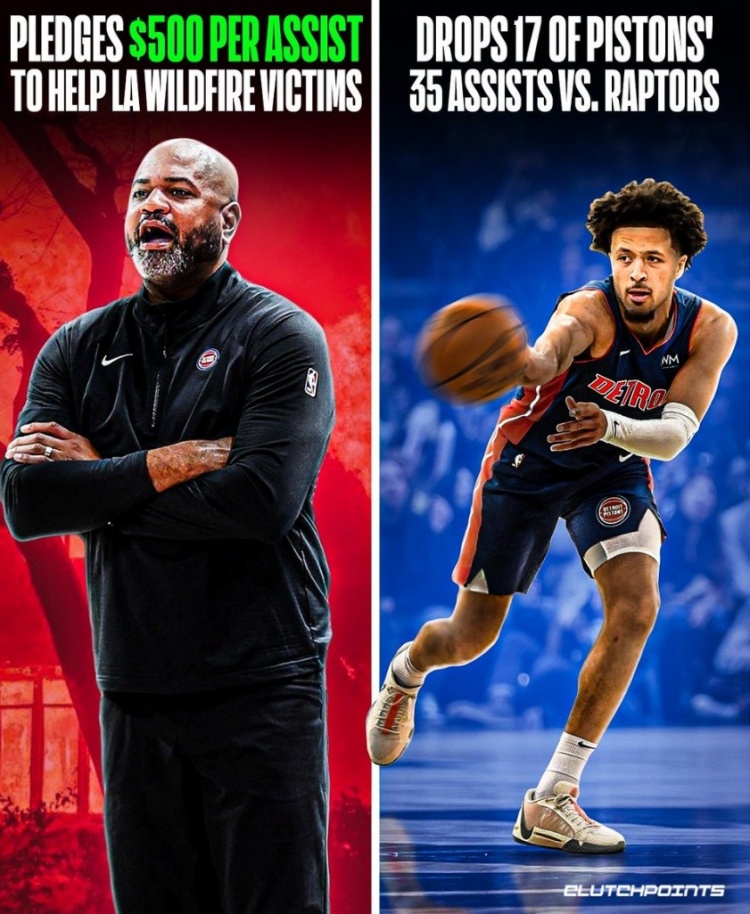 - 一個(gè)助攻500刀!活塞主帥為洛杉磯山火捐17500刀 康寧漢姆8500刀