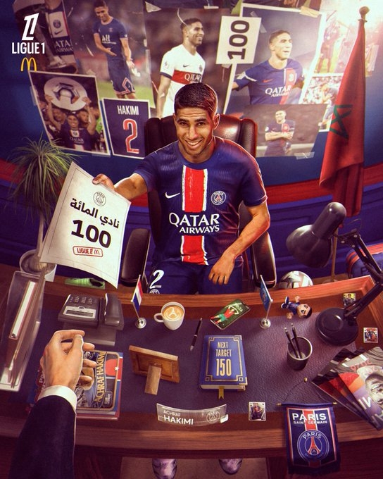 據(jù)法甲官方統(tǒng)計(jì),此役是阿什拉夫出戰(zhàn)的第100場法甲比賽,法甲官方社媒曬出海報(bào),祝賀他達(dá)成這一里程碑。