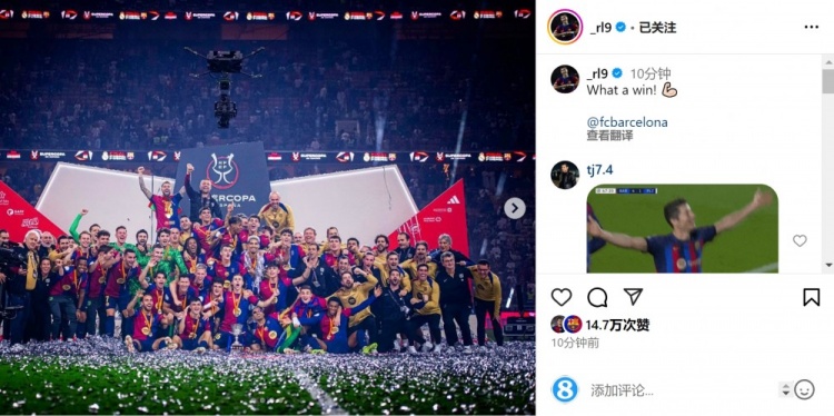 發(fā)布時(shí)間:2025年01月13日 06:50點(diǎn)擊:欄目:足球新聞 1月13日訊 西班牙超級(jí)杯決賽,萊萬傳射建功,幫助巴薩5-2擊敗皇馬,捧起冠軍獎(jiǎng)杯。萊萬在社交媒體上曬出全隊(duì)與獎(jiǎng)杯的合照,慶祝球隊(duì)奪冠,配文:“多么美妙的勝利!” 除特別注明外,本站所有內(nèi)容均為九球直播整理排版,轉(zhuǎn)載請(qǐng)注明出處:傳射建功!萊萬社媒曬全隊(duì)與獎(jiǎng)杯合照:多么美妙的勝利 本文標(biāo)簽: 足球 西甲 巴塞羅那 萊萬