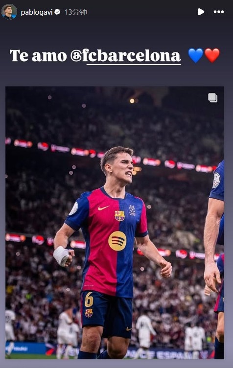 加維更新INS動(dòng)態(tài),他轉(zhuǎn)發(fā)了巴薩奪冠的相關(guān)動(dòng)態(tài),并且配文:“我愛(ài)你@巴薩