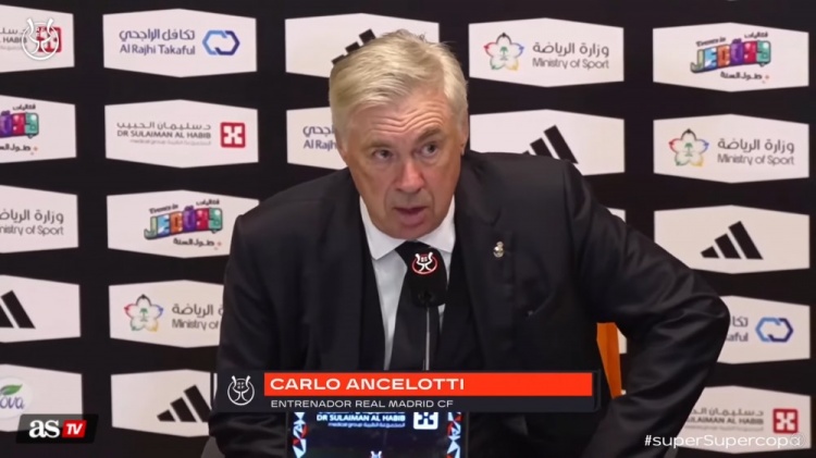 1月13日訊 西超杯決賽,皇馬2-5不敵巴薩,無(wú)緣冠軍?;蜀R主帥安切洛蒂出席新聞發(fā)布會(huì)。