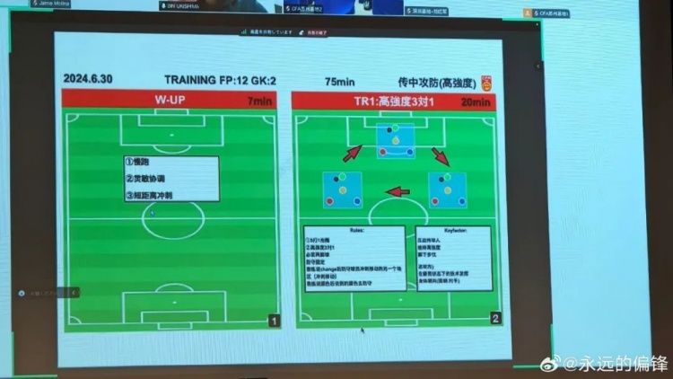 浮嶋敏表示,這項(xiàng)訓(xùn)練要求是達(dá)到180的心率,結(jié)果很多球員早早就達(dá)到了180。視頻中顯示,球員在第一次沖刺跑和搶球中是非常輕松的,第二次沖刺跑和搶球便出現(xiàn)問題,第三次沖刺跑已經(jīng)沖刺不起來也搶不動(dòng)了。更重要的是,球員經(jīng)過三次沖刺回到自己區(qū)域后迎來了另一個(gè)顏色的球員,但該球員因?yàn)轶w能透支已經(jīng)無法有效做出技術(shù)動(dòng)作,不斷被搶斷。