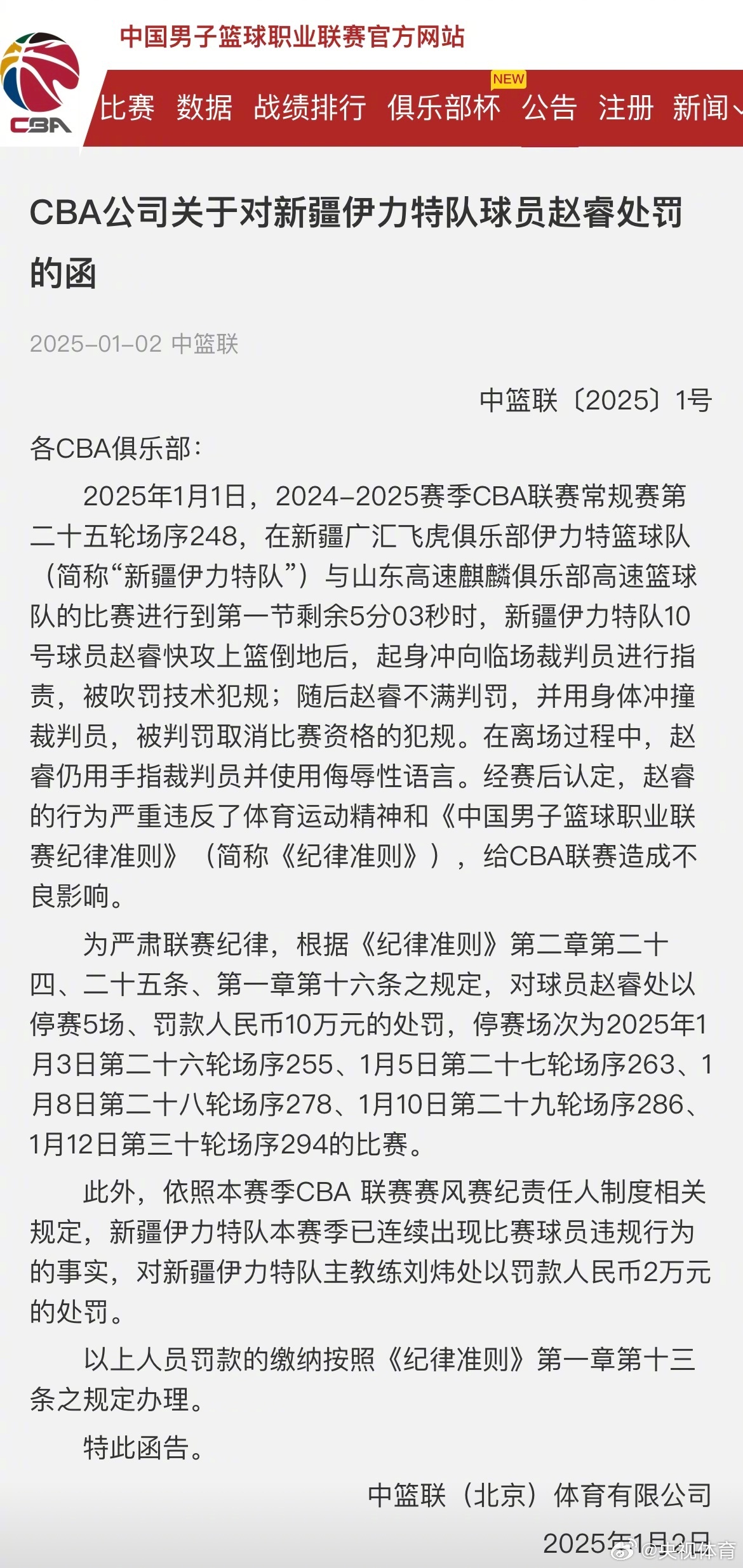 發(fā)布時間:2025年01月03日 13:50點擊:欄目:足球新聞 CBA官方宣布,趙睿沖撞裁判被禁賽五場,罰款人民幣10萬元。對比中超沖撞裁判的案例,你認(rèn)為CBA的處罰重還是輕?中超方面,前河南嵩山龍門外援多拉多曾因沖撞馬寧,被禁賽12個月+罰款20萬,隨后遭河南解約。 除特別注明外,本站所有內(nèi)容均為九球直播整理排版,轉(zhuǎn)載請注明出處:趙睿沖撞裁判被禁5場+罰10萬?多拉多撞馬寧被禁一年+罰20萬 本文標(biāo)簽: 足球 中超 中國足球 轉(zhuǎn)載