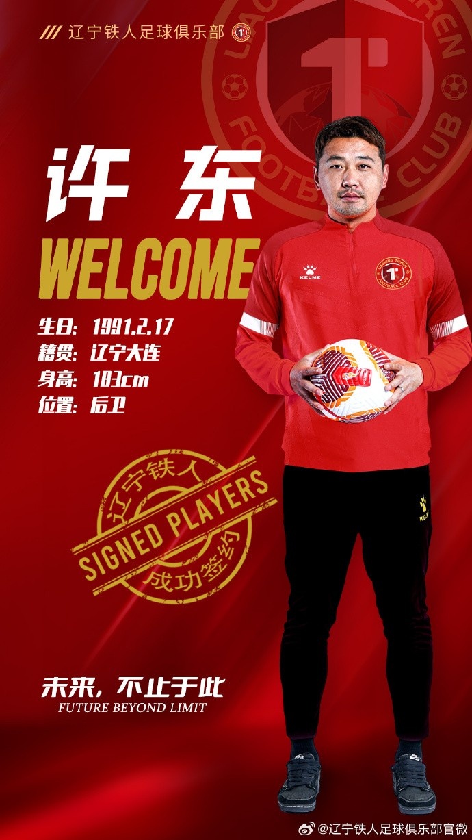 經(jīng)與球員協(xié)商達(dá)成一致,遼寧鐵人足球俱樂部正式與球員許東簽約,2025賽季許東將會身披遼寧鐵人戰(zhàn)袍征戰(zhàn)聯(lián)賽。