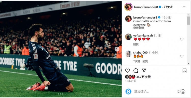 發(fā)布時(shí)間:2025年01月13日 16:50點(diǎn)擊:欄目:足球新聞 1月13日訊 足總杯第三輪比賽,B費(fèi)取得進(jìn)球,并在點(diǎn)球大戰(zhàn)中命中,幫助曼聯(lián)擊敗阿森納,晉級(jí)下一輪。B費(fèi)在社交媒體上曬出慶祝的照片,配文:“很棒的戰(zhàn)斗,每個(gè)人做得都很好。” 除特別注明外,本站所有內(nèi)容均為九球直播整理排版,轉(zhuǎn)載請(qǐng)注明出處:破門(mén)+點(diǎn)球命中!B費(fèi)社媒慶祝晉級(jí):很棒的戰(zhàn)斗,大家做得很好 本文標(biāo)簽: 足球 英超 曼聯(lián) B費(fèi)