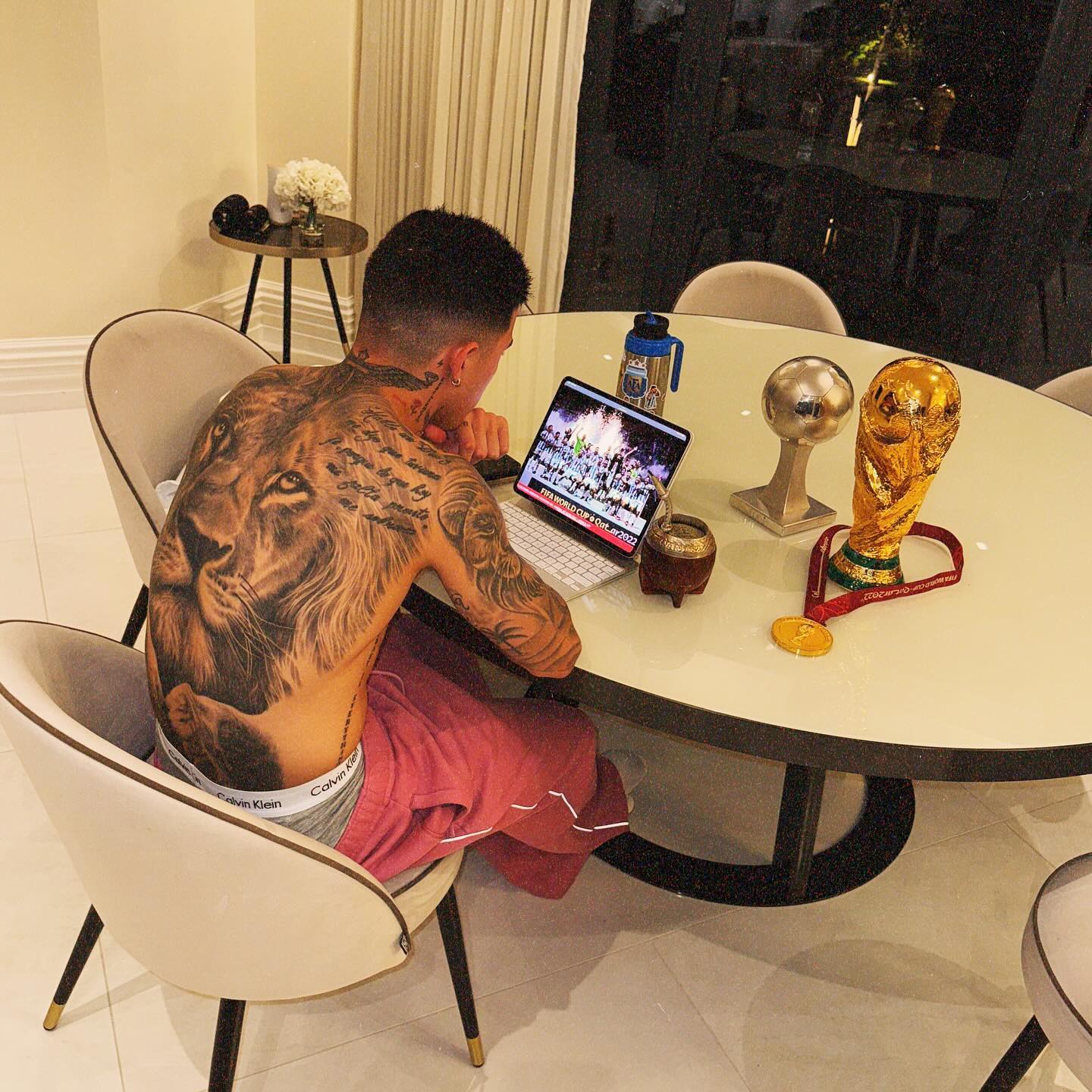 又一位南美狠人在年末登臺,搶走阿爾維斯、伊卡爾迪的風(fēng)頭,成為了花邊新聞的首選。昔日世界杯橫空出世,讓恩佐成為了萬千寵愛的綠茵新星,天價轉(zhuǎn)會到切爾西后讓他的知名度大增,各類曝光機(jī)會給了他講述自己故事的舞臺。就此,他跟愛妻的瓦倫蒂娜-塞萬提斯的故事,成了很多人“又相信愛情”的藍(lán)本,畢竟,這的確是很美好的情景。