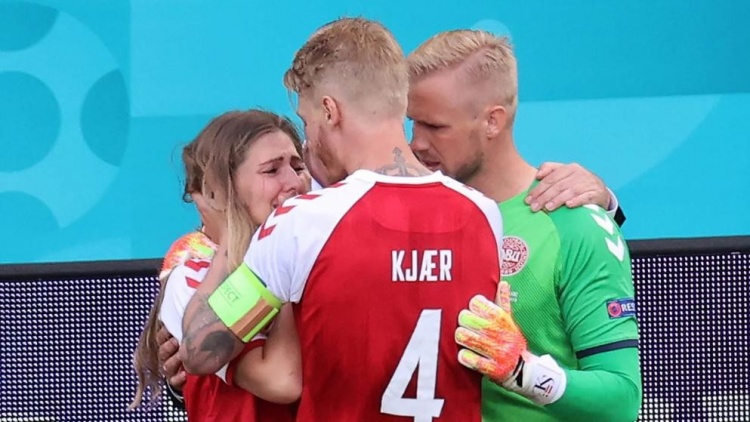 時間撥回2021年6月13日,在歐洲杯丹麥vs芬蘭的小組賽上半場尾聲,丹麥中場埃里克森突然心臟驟停倒地,隊長克亞爾第一時間從后場沖到埃里克森身旁,檢查其是否吐舌,馬上為他做心肺復(fù)蘇,并組織隊友并肩組成保護埃里克森隱私的人墻,直至確保埃里克森接受救治。