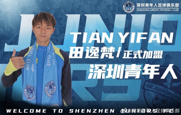 1月13日訊 上賽季中乙排名第三的深圳青年人俱樂部官方宣布,中場田逸梵正式加盟球隊。