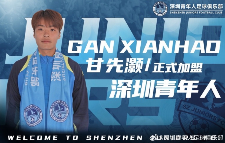 經(jīng)與球員本人友好協(xié)商并達成一致,甘先灝正式加盟深圳青年人足球俱樂部。