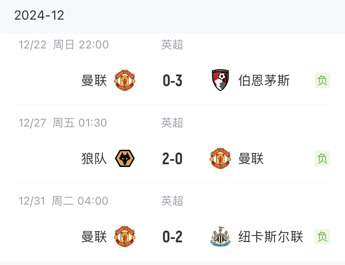 曼聯(lián)0-2不敵紐卡,近三輪英超0進(jìn)球丟7球。