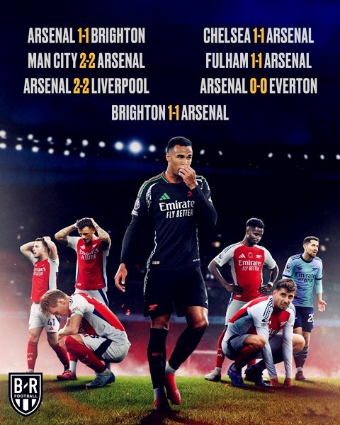 厄德高受傷之后(2024.09.10),阿森納曾在4輪聯(lián)賽中丟掉10分,原本人氣很高的特羅薩德和梅里諾因無(wú)力填補(bǔ)10號(hào)位的空缺,遭到了輿論的口誅筆伐。進(jìn)入薩卡缺陣的時(shí)段后,阿爾特塔的球隊(duì)在三線戰(zhàn)場(chǎng)上連續(xù)遭到暴擊,險(xiǎn)些在一周內(nèi)輸?shù)粽麄€(gè)賽季。
