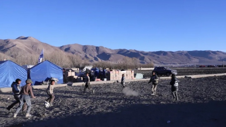 定日縣很多孩子非常喜歡足球,在森嘎村安置點,一群孩子在一處空地上踢起了足球,足球在孩子們的腳下來回傳遞,臉上洋溢著歡快的笑容,似乎在此刻,他們在運動中漸漸忘記地震給他們帶來心靈上的傷痛。