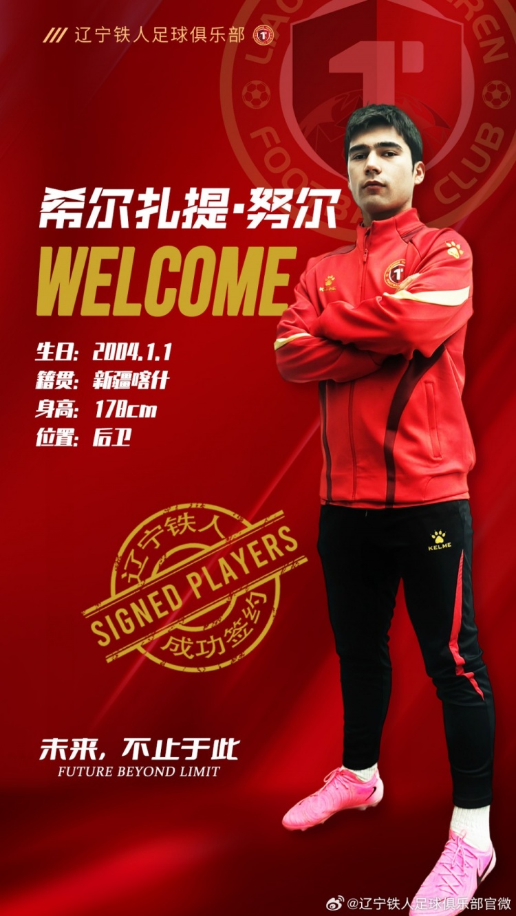 經(jīng)雙方俱樂部協(xié)商達(dá)成一致,湖北青年星足球俱樂部球員希爾扎提-努爾正式租借至遼寧鐵人足球俱樂部,2025賽季希爾扎提-努爾將代表遼寧鐵人征戰(zhàn)聯(lián)賽。