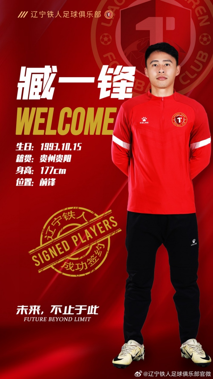 經(jīng)與球員協(xié)商達(dá)成一致,遼寧鐵人足球俱樂(lè)部正式與球員臧一鋒簽約,2025賽季臧一鋒將身披遼寧鐵人戰(zhàn)袍征戰(zhàn)聯(lián)賽。