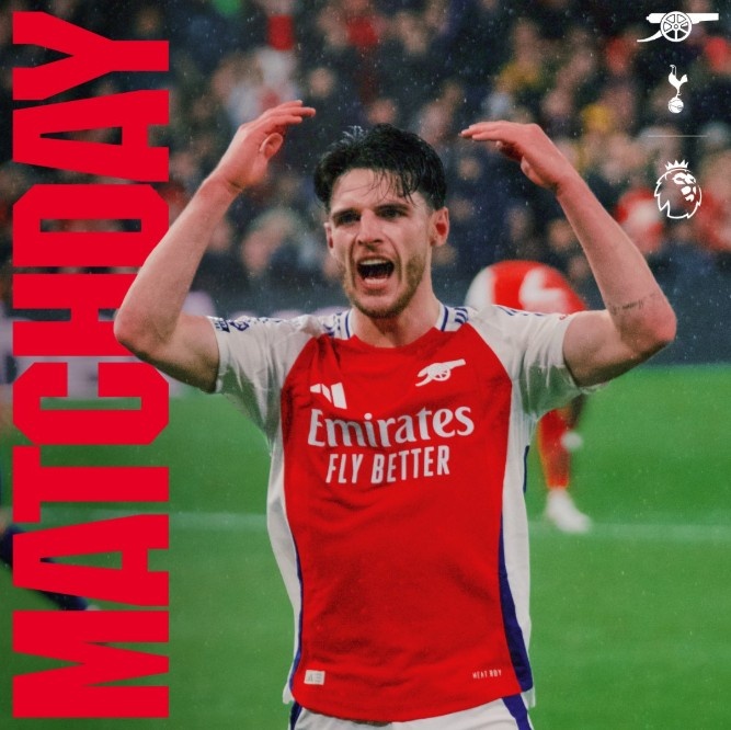 賽前,阿森納官方發(fā)布海報,預熱本場比賽。賴斯單人出鏡,海報右上角為對陣雙方隊徽。本賽季聯(lián)賽兩隊首次交手,阿森納客場1-0戰(zhàn)勝熱刺。