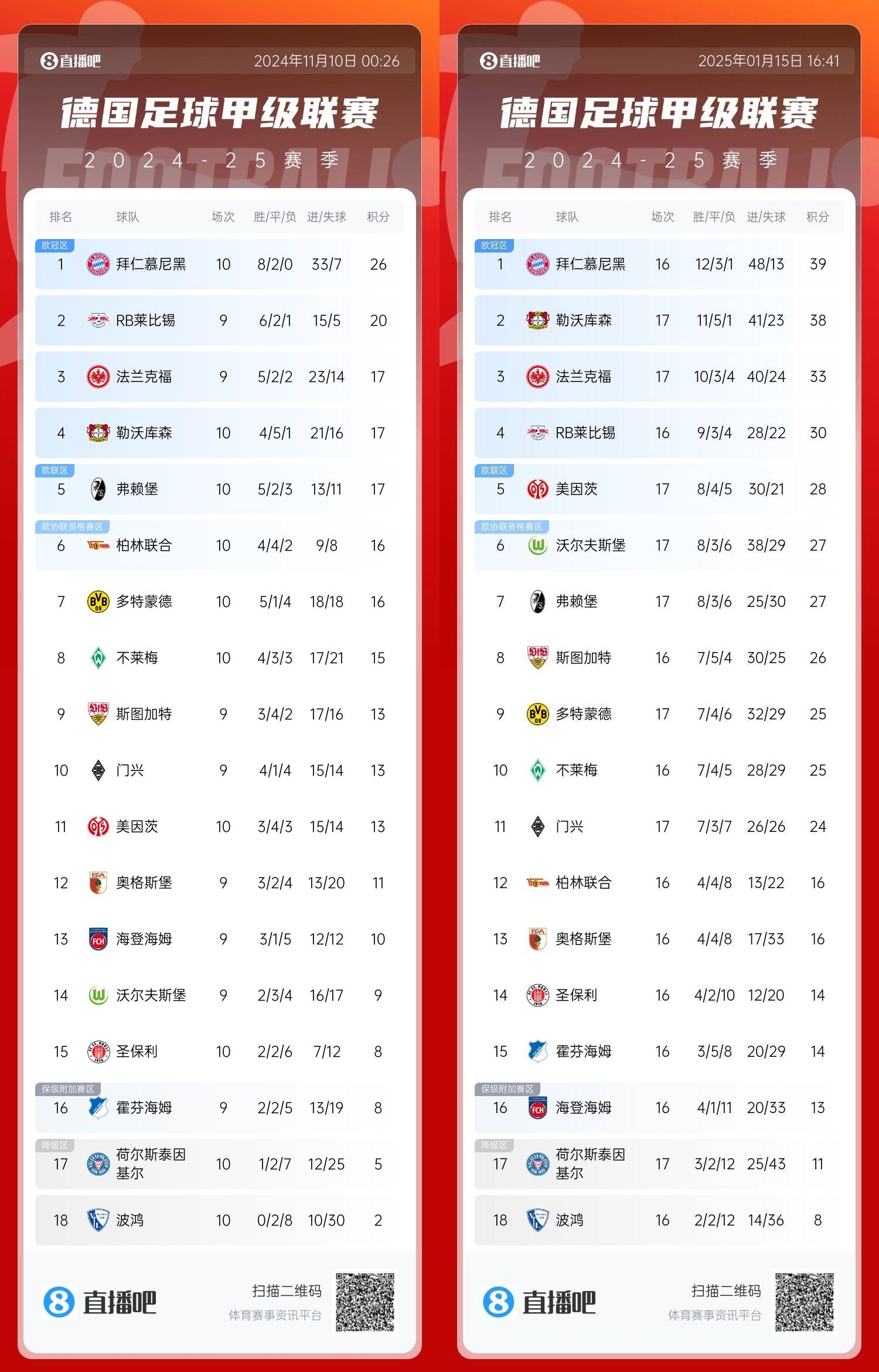 除特別注明外,本站所有內(nèi)容均為九球直播整理排版,轉(zhuǎn)載請(qǐng)注明出處:瘋狂上分!藥廠第10輪9分落后拜仁,隨后7輪全勝多賽1場(chǎng)只差其1分