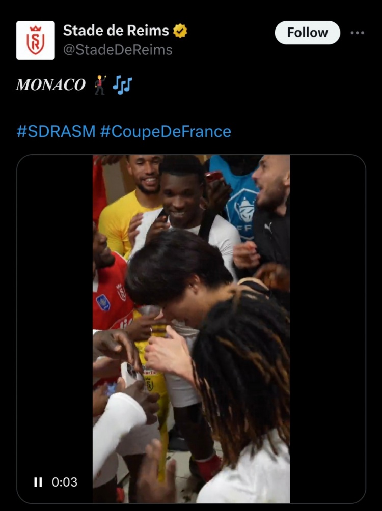 - 蘭斯在法國杯點球大戰(zhàn)淘汰摩納哥,中村敬斗更衣室領(lǐng)舞慶祝勝利