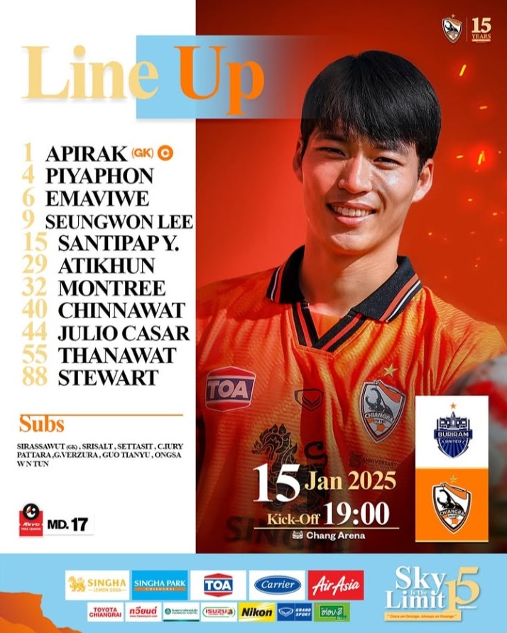 1月15日訊 泰超第17輪,清萊聯(lián)客戰(zhàn)武里南聯(lián),郭田雨替補(bǔ)待命。