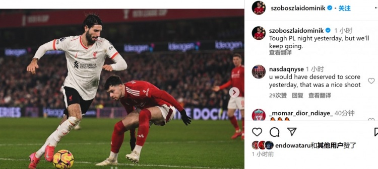 賽后,索博更新社媒:昨晚的英超比賽不好踢,但是我們會(huì)繼續(xù)前進(jìn)。