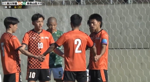 比賽下半場,高川學(xué)園球員開角球前轉(zhuǎn)圈圈,隨后高川學(xué)園球員打門擊中立柱,大森風(fēng)牙跟進補射打進。