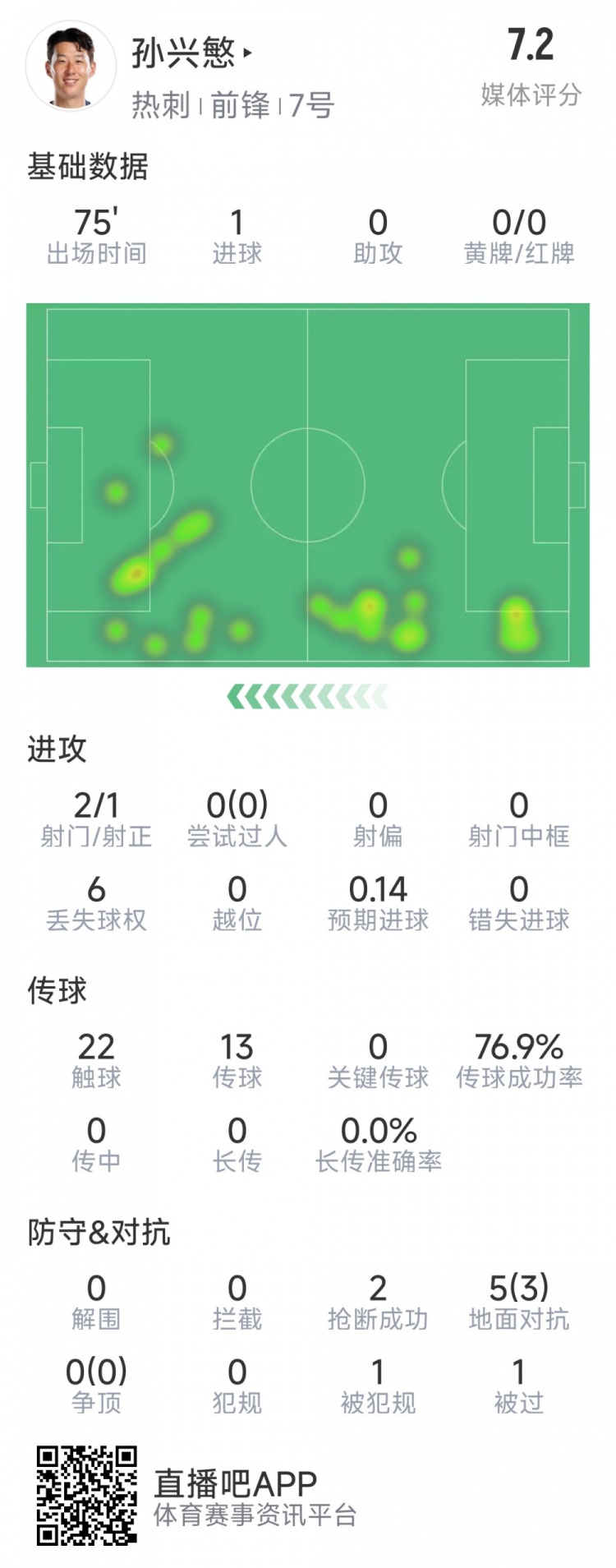 除特別注明外,本站所有內(nèi)容均為九球直播整理排版,轉(zhuǎn)載請注明出處:孫興慜本場數(shù)據(jù):1粒進球,2射1正,2次搶斷,7對抗3次成功