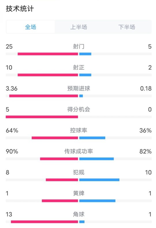 發(fā)布時(shí)間:2025年01月16日 05:50點(diǎn)擊:欄目:足球新聞 1月16日訊 德甲第17輪,拜仁主場(chǎng)5-0霍芬海姆。全場(chǎng)比賽數(shù)據(jù)如下(拜仁在前):射門(mén)25-5射正10-2預(yù)期進(jìn)球3.36-0.16進(jìn)球機(jī)會(huì)5-0控球率64%-36%傳球成功率90%-82%犯規(guī)8-10黃牌1-1角球13-1 除特別注明外,本站所有內(nèi)容均為九球直播整理排版,轉(zhuǎn)載請(qǐng)注明出處:拜仁5-0霍芬海姆數(shù)據(jù):射門(mén)25-5,射正10-2,控球率64%-36% 本文標(biāo)簽: 足球 德甲 拜仁慕尼黑 霍芬海姆