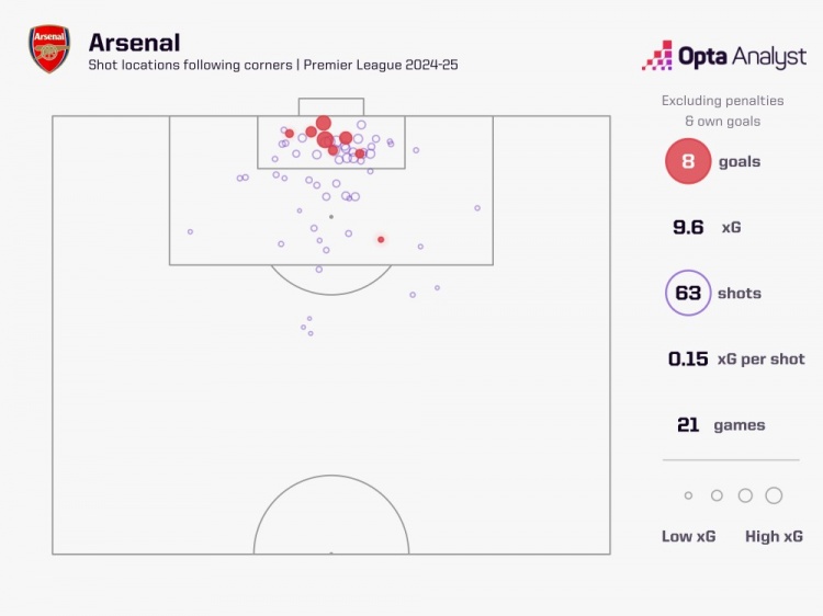 據(jù)opta統(tǒng)計,算上烏龍球,阿森納本賽季已經(jīng)通過角球打進10球,英超中沒有其他球隊能做到這一點。