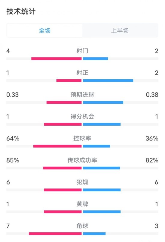 發(fā)布時間:2025年01月16日 05:50點擊:欄目:足球新聞 1月16日訊 英超第21輪焦點戰(zhàn),阿森納半場暫2-1熱刺。半場數(shù)據(jù)如下(阿森納在前):射門4-2射正1-2預(yù)期進球0.33-0.38進球機會1-1控球率64%-36%傳球成功率85%-82%犯規(guī)6-6黃牌1-1角球7-3 除特別注明外,本站所有內(nèi)容均為九球直播整理排版,轉(zhuǎn)載請注明出處:阿森納半場2-1熱刺數(shù)據(jù):射門4-2,射正1-2,控球率64%-36% 本文標(biāo)簽: 足球 英超 阿森納 熱刺