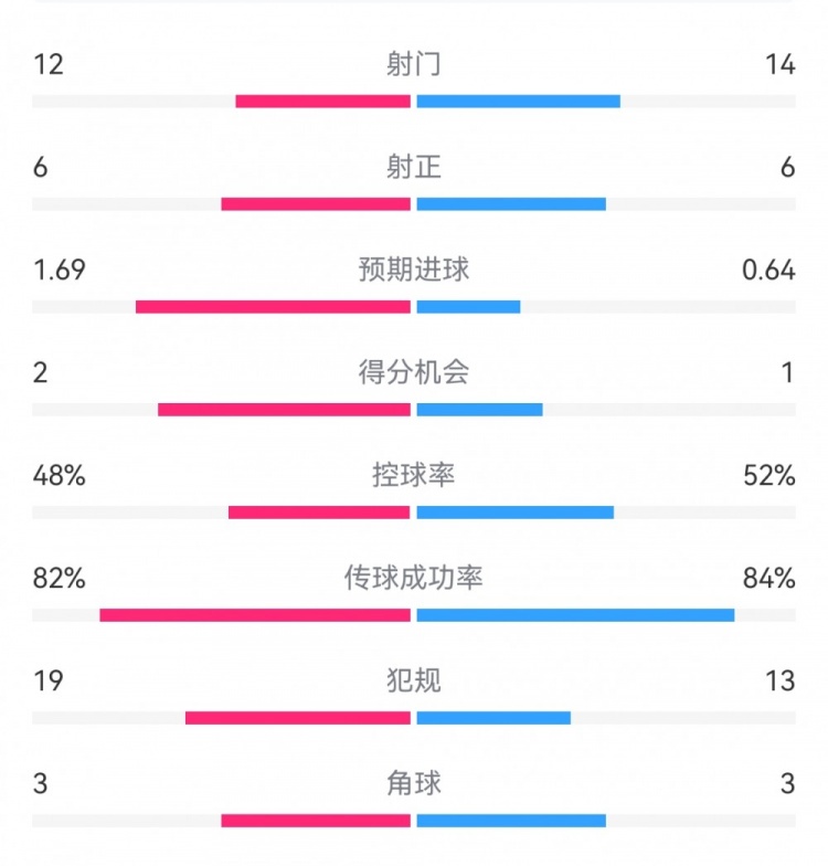1月16日訊 本輪意甲,國(guó)米主場(chǎng)2-2博洛尼亞。雙方全場(chǎng)重點(diǎn)數(shù)據(jù)對(duì)比如下↓(主隊(duì)國(guó)米在前,客隊(duì)博洛尼亞在后)
