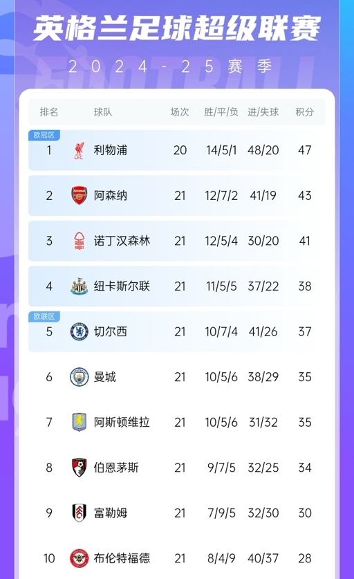 英超第4的紐卡38分、第5切爾西37分、第6曼城35分、第7維拉35分、第8伯恩茅斯34分。4-8名的這5隊(duì)最大分差僅有4分。