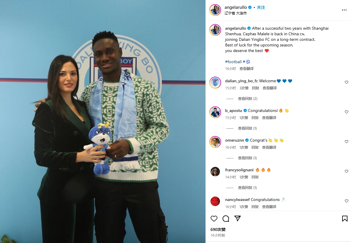 發(fā)布時間:2025年01月16日 10:50點擊:欄目:足球新聞 01月16日訊 昨日大連英博官宣,馬萊萊加盟球隊。馬萊萊經(jīng)紀人Angela Rullo曬出合照寫道:在申花效力兩年后,馬萊萊回到中國與大連英博簽訂了一份長期合同。祝你在即將到來的新賽季好運,你值得最好的 除特別注明外,本站所有內(nèi)容均為九球直播整理排版,轉(zhuǎn)載請注明出處:經(jīng)紀人曬與馬萊萊合照:祝你在新賽季好運,你值得最好的 本文標簽: 足球 中超 中國足球 大連英博