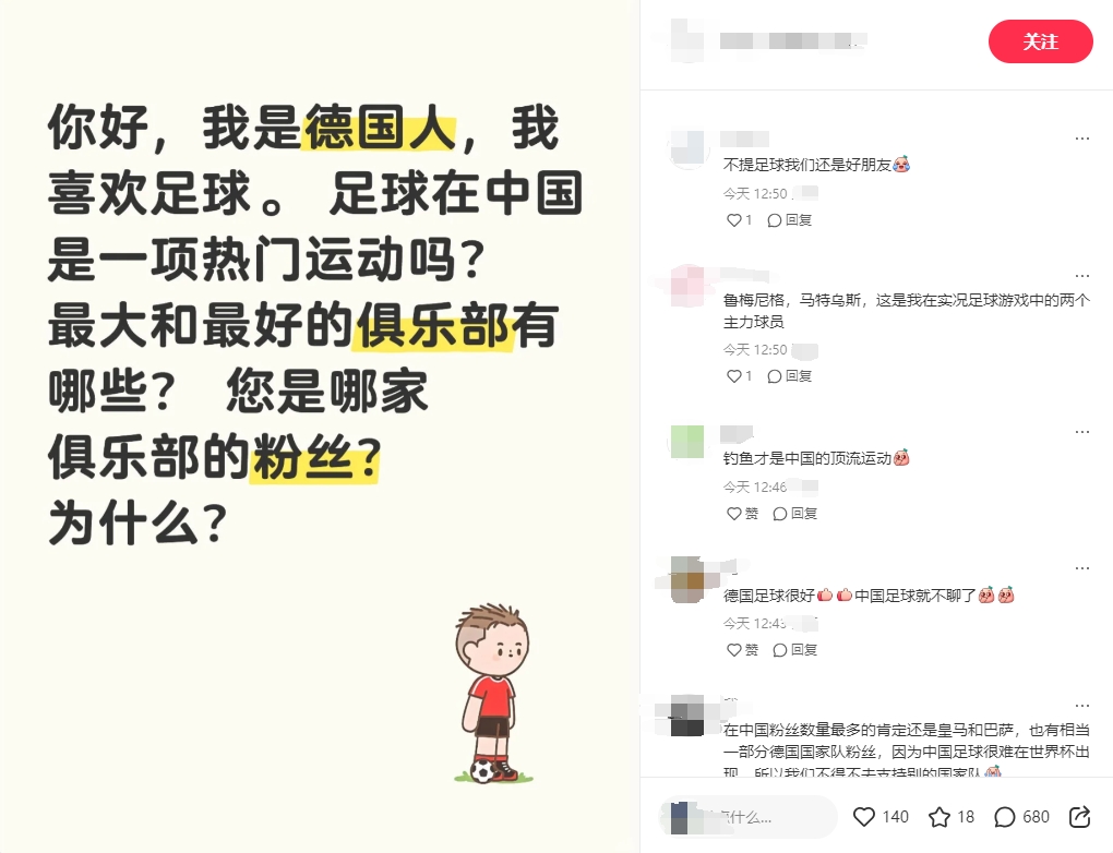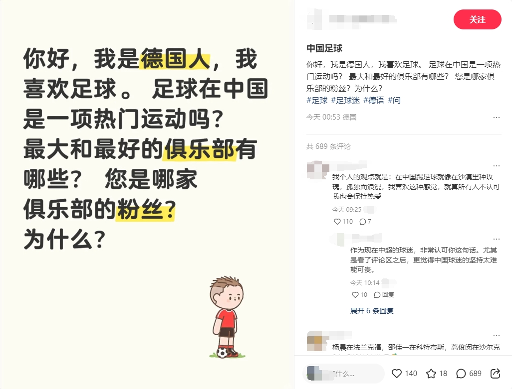 除特別注明外,本站所有內(nèi)容均為九球直播整理排版,轉(zhuǎn)載請注明出處:德國球迷上小紅書了解中國足球,網(wǎng)友回:不提足球還是好朋友