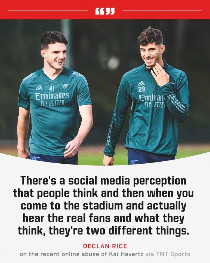 1月16日訊 哈弗茨此前在足總杯對曼聯(lián)表現不佳,他的孕妻因此在社交媒體上遭到球迷死亡威脅,哈弗茨的隊友賴斯日前接受了媒體采訪,并談到了網絡上的鍵盤俠。