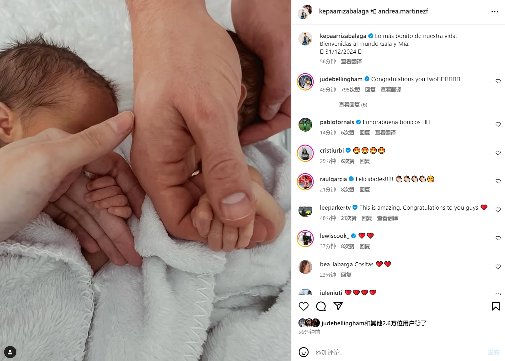發(fā)布時(shí)間:2025年01月03日 13:52點(diǎn)擊:欄目:足球新聞 1月3日訊 凱帕和妻子共同更新了社媒動態(tài),向外界宣布兩人的雙胞胎孩子在2024年的最后一天出生。凱帕表示道:我們生命中最美好的事情,歡迎Gala和Mia來到世界。 除特別注明外,本站所有內(nèi)容均為九球直播整理排版,轉(zhuǎn)載請注明出處:恭喜雙胞胎!凱帕夫婦更新社媒,宣布兩人的孩子在去年底出生 本文標(biāo)簽: 足球 英超 切爾西 伯恩茅斯
