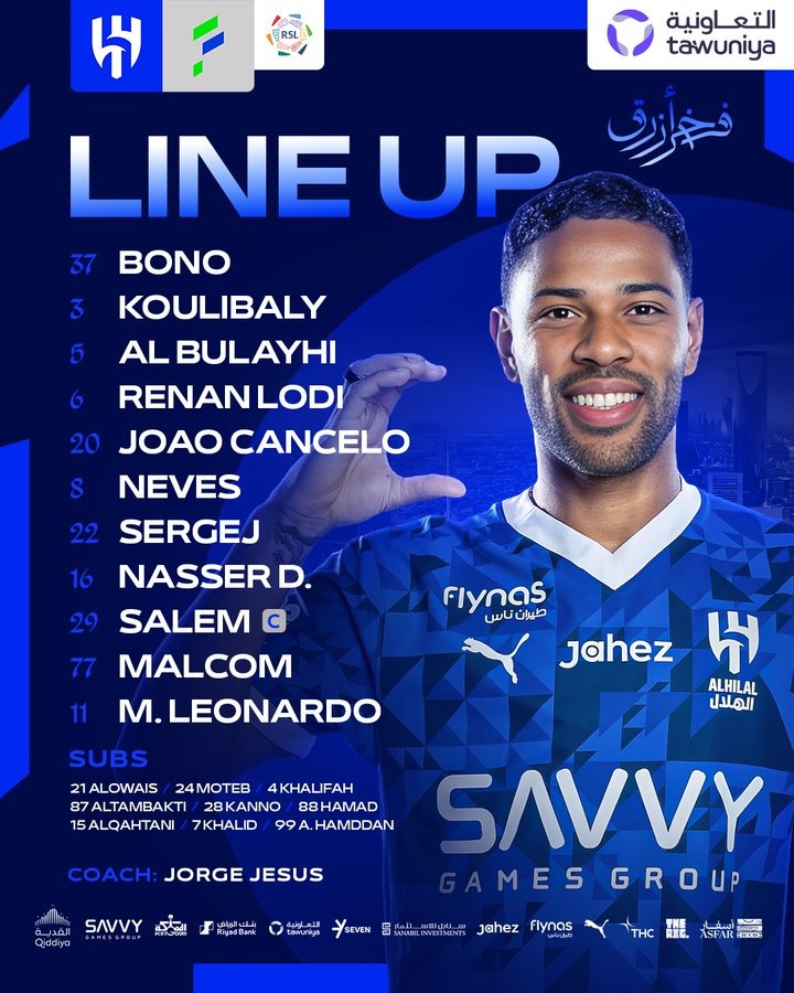 1月16日訊 今晚11點(diǎn)05分,利雅得新月將在沙特聯(lián)賽第15輪主場迎戰(zhàn)哈薩征服,現(xiàn)在球隊(duì)公布了首發(fā)名單。