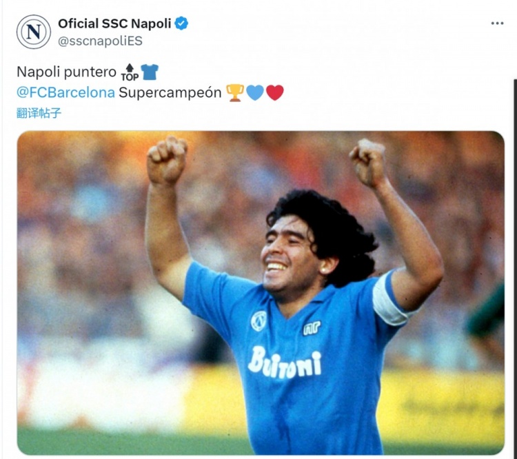 那不勒斯和巴薩都是馬拉多納的老東家,那不勒斯西語官方社媒曬出馬拉多納的照片,并配文:“那不勒斯(意甲)領(lǐng)頭羊,巴薩西超杯冠軍?!?/p>