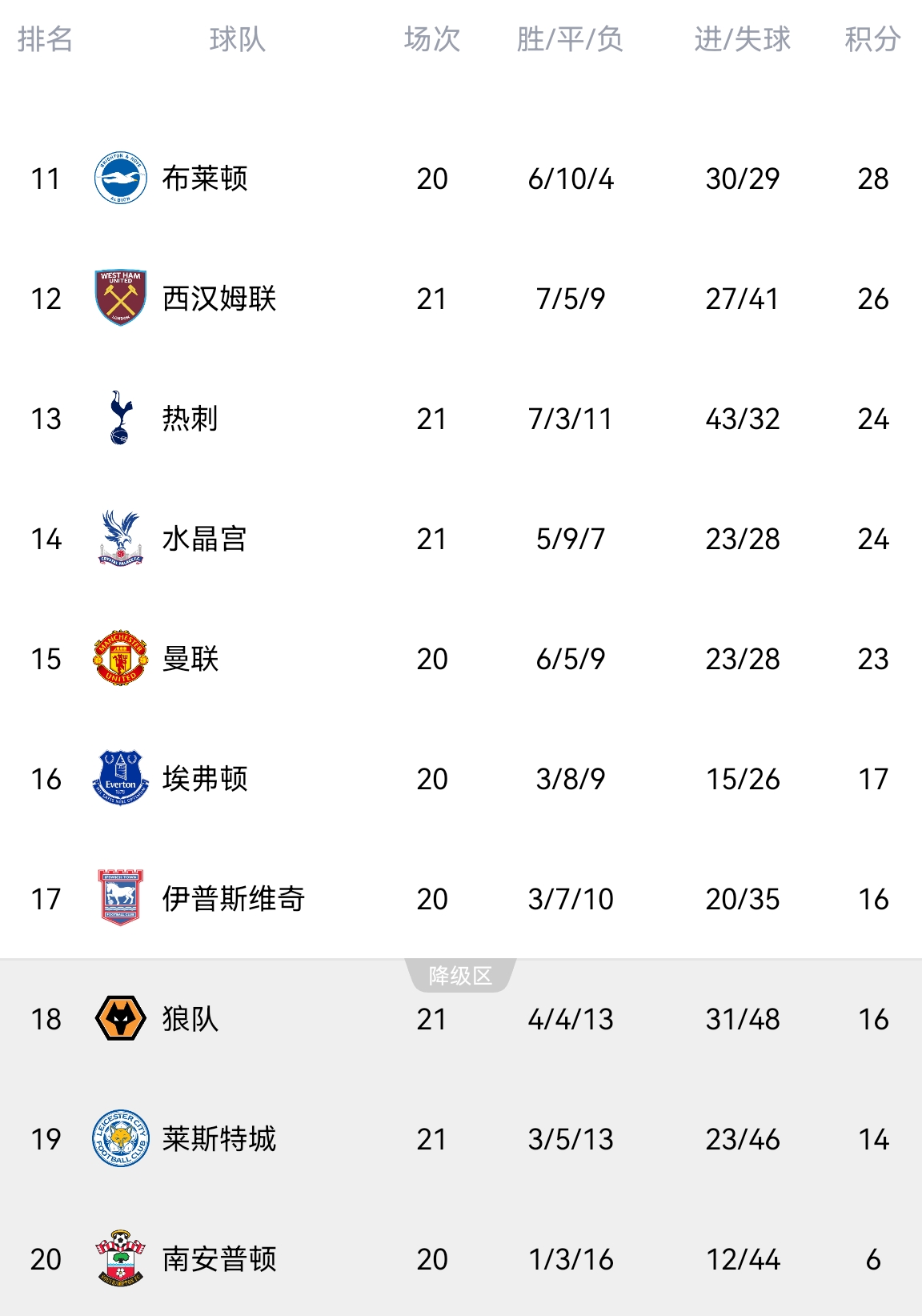 除特別注明外,本站所有內(nèi)容均為九球直播整理排版,轉(zhuǎn)載請(qǐng)注明出處:“熱刺沒(méi)排這么低過(guò)”目前熱刺24分,曼聯(lián)23分,降級(jí)區(qū)16分