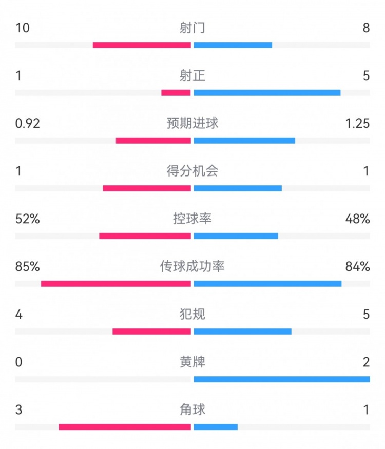除特別注明外,本站所有內(nèi)容均為九球直播整理排版,轉(zhuǎn)載請(qǐng)注明出處:曼聯(lián)0-1圣徒半場(chǎng)數(shù)據(jù):射門(mén)10-8,射正1-5,得分機(jī)會(huì)1-1,角球3-1