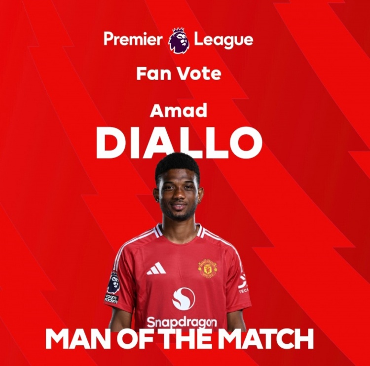 本場比賽阿瑪?shù)略谧詈髸r刻上演帽子戲法,幫助球隊完成逆轉(zhuǎn),賽后他也以92.9%的得票率毫無懸念當(dāng)選英超官方本場最佳球員。
