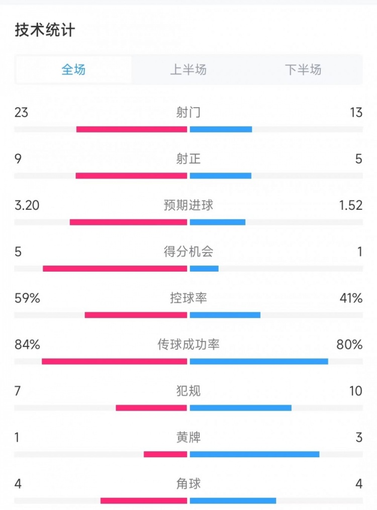 發(fā)布時間:2025年01月17日 06:50點擊:欄目:足球新聞 1月17日訊 英超第21輪比賽,曼聯(lián)主場3-1擊敗南安普頓。曼聯(lián)vs南安普頓數(shù)據(jù):射門——23比13射正——9比5預(yù)期進(jìn)球——3.2比1.52得分機會——5比1控球率——59%比41%傳球成功率——84%比80%犯規(guī)——7比10黃牌——1比3角球——4比4 除特別注明外,本站所有內(nèi)容均為九球直播整理排版,轉(zhuǎn)載請注明出處:曼聯(lián)vs南安普頓數(shù)據(jù):射門23比13、射正9比5、控球率59%比41% 本文標(biāo)簽: 足球 英超 曼聯(lián) 南安普頓