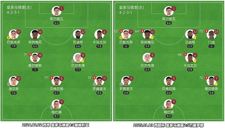 貝林厄姆靠前呼應(yīng)三名前鋒,皇馬在新年前后掀起進(jìn)攻風(fēng)暴。西超杯決賽,帶傷出戰(zhàn)的貝林厄姆無(wú)力參與防守,皇馬的陣型被割裂開(kāi)來(lái)。